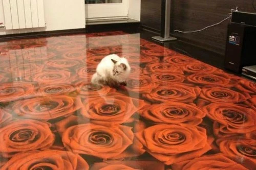 Si tuviste suficiente de los temas acuáticos, aunque la mayoría de estos geniales pisos en 3D pertenecen a esta categoría, aquí hay algo de variedad. ¡Puedes sentarte en un lecho de rosas, en serio! Si elige rosas rojas, resultará ser una celebración del Día de San Valentín 365/24/7.