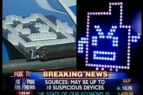 En enero de 2007, en Boston, de repente, un día, una persona nota un panel LED que muestra a un hombre diminuto levantando el dedo medio. Llamó a la policía (este fue un ejemplo de personas que participan en Seguridad Nacional). El Departamento de Policía de Boston y el Departamento de Bomberos de Boston entraron e identificaron el dispositivo como un IED (un dispositivo explosivo improvisado). Pensaron en destruirlo y pronto descubrieron que había más dispositivos de este tipo esparcidos por toda la ciudad. La gente entró en pánico colectivamente.