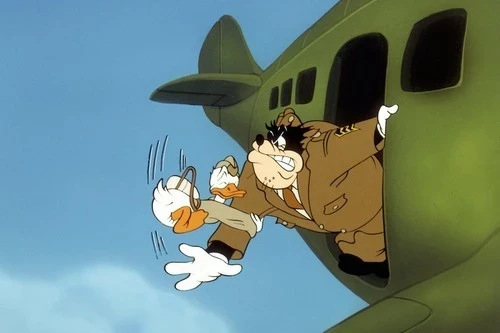 En la película de 1942, Sky Trooper, el pato Donald aparece durante los años de la Segunda Guerra Mundial. Donald, un pelador de papas en la fuerza aérea, tiene la ambición de volar, tanto que corta papas en forma de avión. Llega a volar como una tropa de paracaidistas, después de pelar toneladas de papas y pasar por rigurosas pruebas y ejercicios demostrados por el aterrador sargento Black Pete. Luchan y tienen una experiencia salvaje, hasta que ambos terminan con piernas y brazos enyesados, pelando papas.