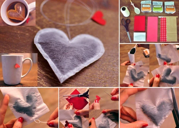 Tome las bolsitas de su té favorito y retire las pestañas de papel originales . Luego reemplázalos con etiquetas hechas por ti, en forma de círculo, corazón, flor, gato: recorta la forma que más te guste y quizás enriquécela con su nombre, con una dedicatoria de amor o con un mensaje de buenos días o buenas noches.