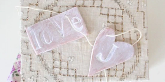 Para una dedicatoria única, coge un palito de arcilla de las tiendas de bricolaje y estíralo con un rodillo, obteniendo un grosor de aproximadamente medio centímetro : córtalo en forma de corazón, óvalo, flor y graba el mensaje con un punzón o un palillo. para su ser querido. Finalmente hornearlo en el horno y colorearlo o decorarlo.