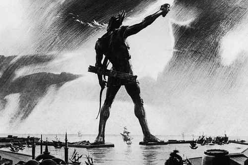 Una estatua de 110 pies de altura honraba al dios sol griego Helios, erigida en la ciudad de Rodas por Chares de Lindos en el 280 a. Una de las Siete Maravillas del Mundo Antiguo, fue construida para celebrar la victoria de Rodas sobre el gobernante de Chipre. Antes de su destrucción en el terremoto, el Coloso de Rodas tenía más de 33 metros (110 pies) de altura, lo que lo convertía en una de las estatuas más altas del mundo antiguo. Según el historiador Estrabón, siguió siendo una atracción turística popular incluso en ruinas.