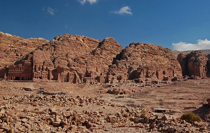 Es una ciudad arqueológica de Jorden que es famosa por su arquitectura excavada en la roca y su sistema de conductos de agua. Otro nombre para Petra es la Ciudad Rosa debido al color de la piedra en la que está tallada. Establecida durante el 312 a. C. como la capital de los árabes nabateos, es un símbolo de Jordania. Se encuentra en la ladera de Jebel al-Madhbah en una cuenca entre las montañas que forman el flanco oriental de Arabah (Wadi Araba), el gran valle que se extiende desde el Mar Muerto hasta el Golfo de Aqaba.