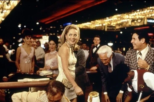 Casino cuenta la historia del ascenso a la fama de Las Vegas con la ayuda de la mafia durante los años 70. Es una versión moderna del Lejano Oeste donde los vaqueros, o en este caso, los mafiosos Robert De Niro y Joe Pesci, visten trajes informales color coral/pastel. La esposa de De Niro, interpretada por Sharon Stone, retrata los excesos de la década mejor que nadie: escabulléndose en cada escena con vestidos dorados, joyas extravagantes y pieles.
