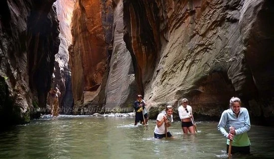 Sin embargo, si bien este maravilloso viaje seguramente encantará a los excursionistas, se debe tener en cuenta que caminar a través de Zion Narrows es extremadamente peligroso, ya que las inundaciones repentinas pueden ocurrir rápidamente y toda el área es un gran drenaje. Las tormentas de lluvia a una distancia de hasta 50 millas pueden asaltar el cañón y cada año los excursionistas mueren en este sendero. Asegúrese de consultar el informe pronóstico con anticipación para asegurarse de que NO HAY LLUVIA en el pronóstico. Sin embargo, con las precauciones adecuadas, esta caminata, que está calificada como una de las mejores caminatas en todo el sistema de Parques Nacionales de EE. UU., no tiene paralelo.