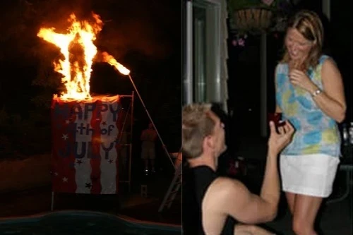 Todd y su amigo especialista, Eric, planearon una propuesta para la amada de Todd, Malissa, que la dejaría a ella ya toda su familia y amigos completamente asombrados. Eric, siendo un especialista, arregló todos los preparativos para que Todd fuera incendiado y saltara a una piscina. En su reunión familiar anual del 4 de julio, hicieron una plataforma sobre su piscina y Todd se vistió con el material ignífugo adecuado. Eric usó un poste de aluminio para prender fuego a la capa de Todd y en segundos estaba completamente envuelto en llamas. Todd cruzó corriendo la plataforma y saltó al cielo nocturno y directamente a la piscina.