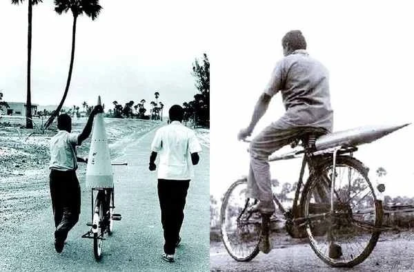 2. El primer cohete de la India fue traído y transportado en bicicleta.