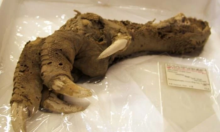 En 1986, un grupo de arqueólogos descubrió una garra de pájaro mientras excavaba en una cueva de Nueva Zelanda. Los músculos y la carne del ave todavía están adheridos a él. Los arqueólogos tendrán más tarde que el pie era el de un pájaro sin alas llamado Moa que ahora está extinto. En realidad, había desaparecido por completo del mundo hace unos 2000 años. El Moa sin alas era un ave enorme y pesada que llegaba a pesar 250 kg. Y, tenía una altura de 12 pies. Las garras de esta ave se conservan en el museo de historia natural de Nueva Zelanda.