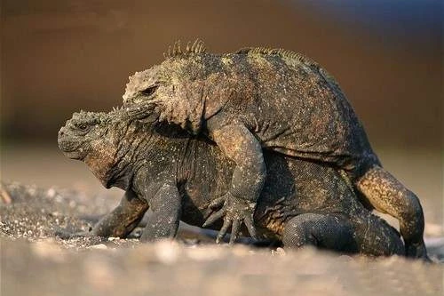 Las iguanas marinas, esparcidas por todo el archipiélago de Galápagos, también repelieron a Darwin, quien los llamó “diablillos de la oscuridad”, y los describió como “repugnantes lagartijas torpes” que son “tan negras como las rocas porosas sobre las que se arrastran “. Estos lagartos de 200-340 mm que pesan entre 1 y 13 kg se encuentran entre los lagartos más singulares y extraños del mundo, ya que viven en las playas rocosas y se sumergen hasta 9 m de profundidad en agua fría, porque afortunadamente, tienen una Dieta de algas que raspan las rocas con sus mandibulas planas.