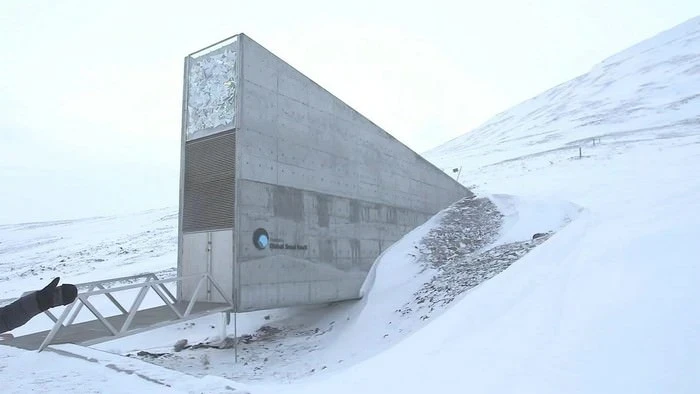 La Bóveda Global de Semillas de Svalbard o la Bóveda del Juicio Final, como se le llama, es un banco de semillas situado en medio del Ártico, en una isla que es un pedazo de Noway. La bóveda tiene una variedad de semillas almacenadas como protección contra el fin del mundo y está abierta para invitados especiales algunos días.