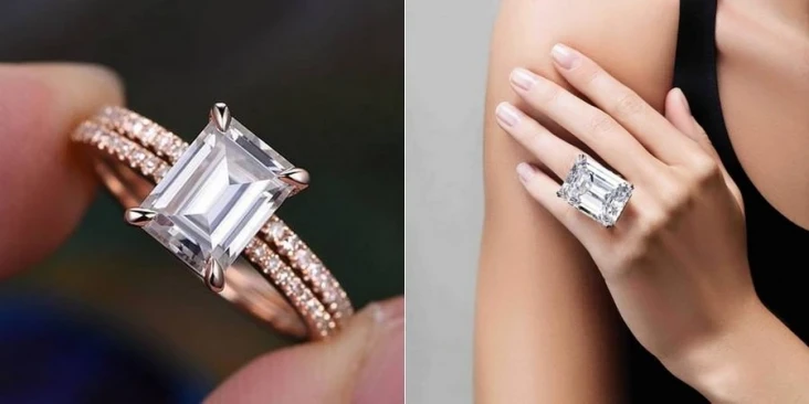 Si quiere que su pareja sepa lo importante que es en su vida, dele una piedra asombrosa con un corte esmeralda, como lo que Mariah Carey recibió de su ex novio James Packer: una piedra central de corte esmeralda de 35 quilates con dos baguettes cónicos. .