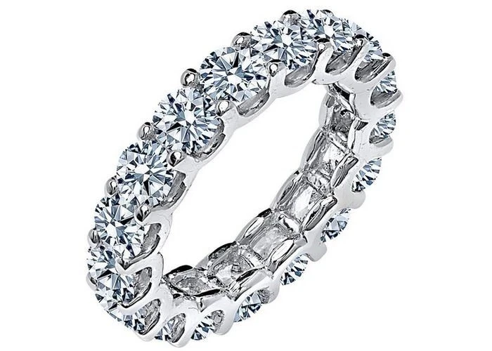 ¿Por qué no mimar a su amada con una banda de diamantes? ¿Por qué proclamar tu amor con una sola piedra? Haga todo lo posible con una banda de diamantes engastados en canal o un anillo entero pavimentado con diamantes pequeños. Los diamantes pavé tienen las piedras bellamente engastadas en la banda tan juntas que el metal a menudo no es visible.