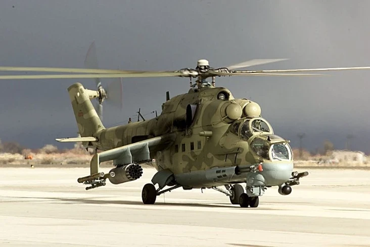 El Mil Mi-24 es un gran helicóptero artillado y de ataque y transporte de tropas de baja capacidad con espacio para ocho pasajeros. El Mi-24, el primer helicóptero en entrar en servicio con la Fuerza Aérea Rusa como transporte de asalto y cañonera.