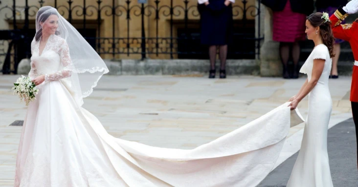 El vestido de Kate Middleton es definitivamente real. Diseñado inspirándose en el de la Princesa de Mónaco , el vestido es obra de la diseñadora Sarah Burton . El cuerpo con escote corazón y adornado con la elección de encaje de macramé y sobre la amplia falda de seda han sido bordados con elegantes adornos florales .
